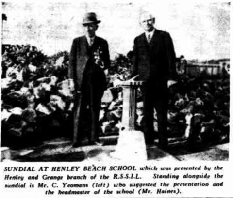 On Coronation Day, 12 May 1937, he presented a sundial to Henley Beach School on behalf of the sub-branch, recognising the children’s efforts on Anzac Day.