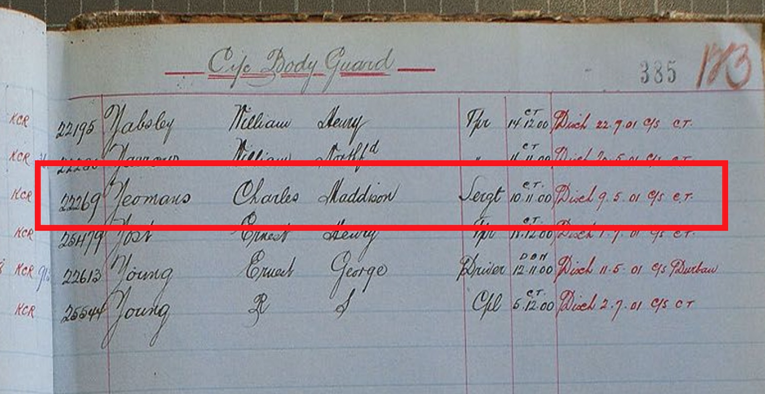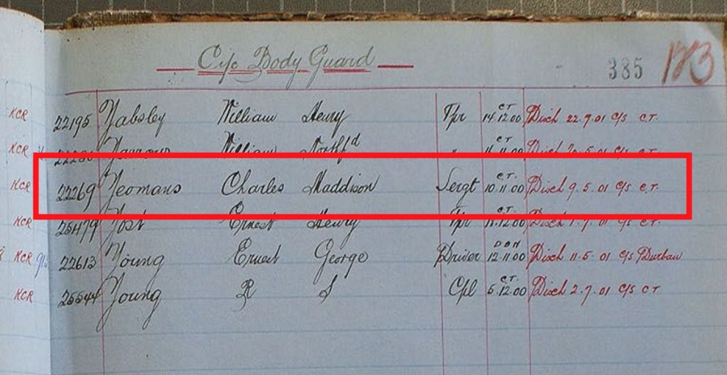 Boer War Listing for C.M. Yeomans – Cic Body Guard