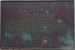 Small bronze plaque on LHS wall of Yeomans Flats